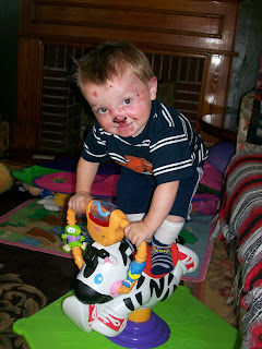 Evan is doing good. he goes tomorrow to get his blood check to see how is levels are. I hope good. He hasn't been eating today. I guess he has blister in his mouth. He has been so happy and so good this week. That i just love it, he is such a boy. His face is looking bad again. His teeth are really hurting him to. I think I'm going to have to call the dentist again and tell them that they are going to have to do something for him. I think that's why he wont eat.